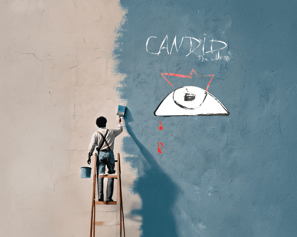 Dans le cadre d'un projet scolaire, nous avons travaillé sur la création de la direction artistique de CANDID, un artiste basé à Dijon, pour son premier projet musical. Ce projet visait à concevoir une identité visuelle cohérente et marquante, reflétant l'univers de l'artiste et son exploration émotionnelle et artistique.